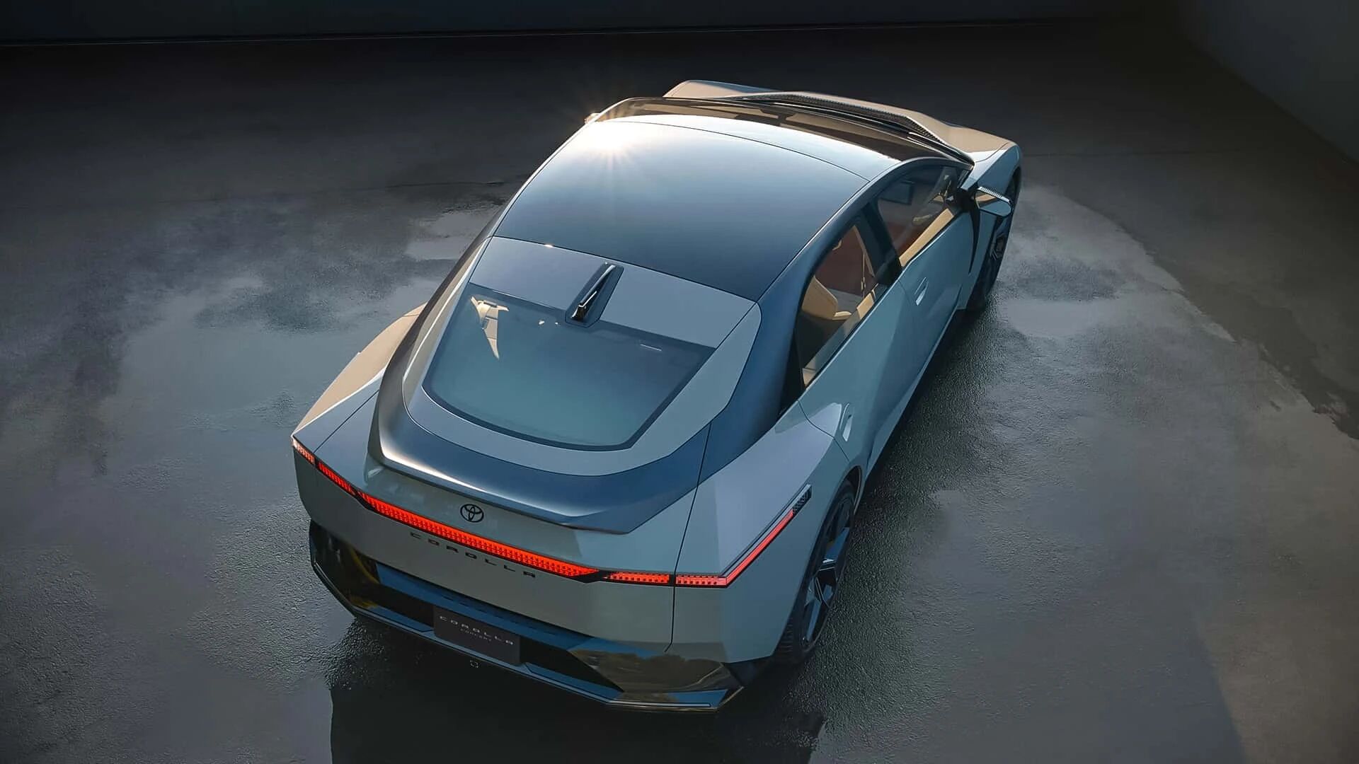 车身侧面,全新卡罗拉概念车在左前翼子板位置预计布局有充电接口,应用半隐藏式门把手和较大尺寸轮辋,不排除应用无边框车门设计。至于车尾部分,全新卡罗拉概念车同样使用贯穿式灯组,细节加入后扰流板,尾门中间为黑色" Corolla "英文名称,整体展现出更运动的风格。